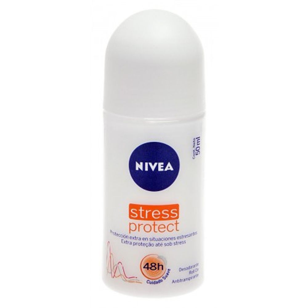 Desodorante roll on nivea stress protect. La fórmula con complejo de zinc y el nuevo activo stress protect protege contra la humedad de las axilas y contra el mal olor corporal por 48 horas. Nivea research has developed a unique formula which now also protects your from differently smelling sweat components caused by stressful situations. Nivea stress protect deodorant provides extra protection in stressful situations. The unique formula with zinc complex and stress protect actives fights differently smelling sweat components to keep you protected from body odour for 48 hours.